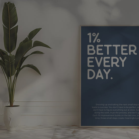 PRINTABLE WALL ART - This blue motivational poster says '1% better every day' and would be a great addition to your home office decor, as a reminder to trust the process because small steps move you forward, even if it doesn't feel like it. Positive quotes are a small addition that can make a big impact on your work mindset! The printable poster is minimalist, bold and trendy, and also a great option for a powerful encouragement gift :)