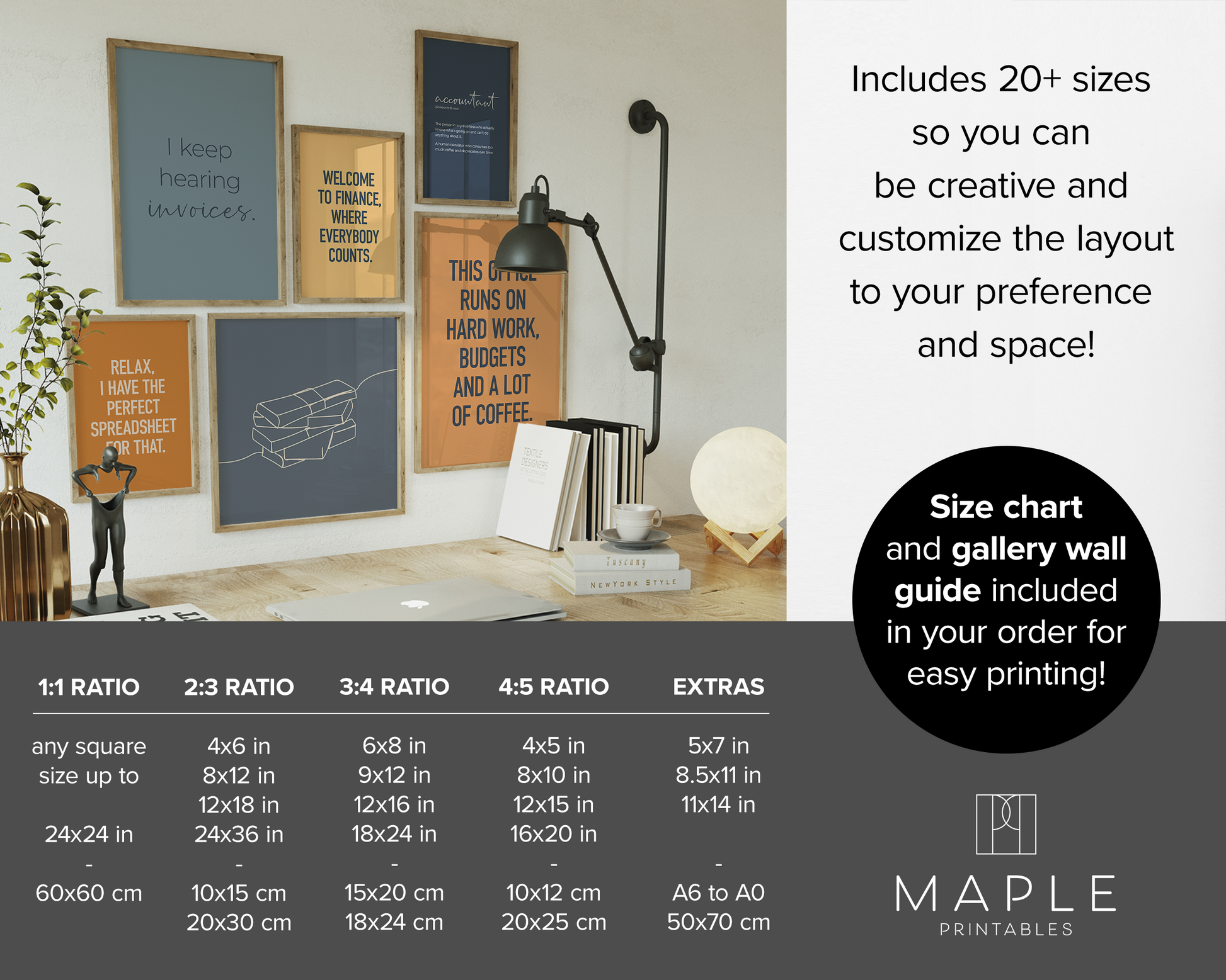 Each print is available in 8 files that cover 20+ sizes so you can create your own gallery wall - see details below and in photos. It's super easy: download, print (home, print shop or photo lab), frame and display!