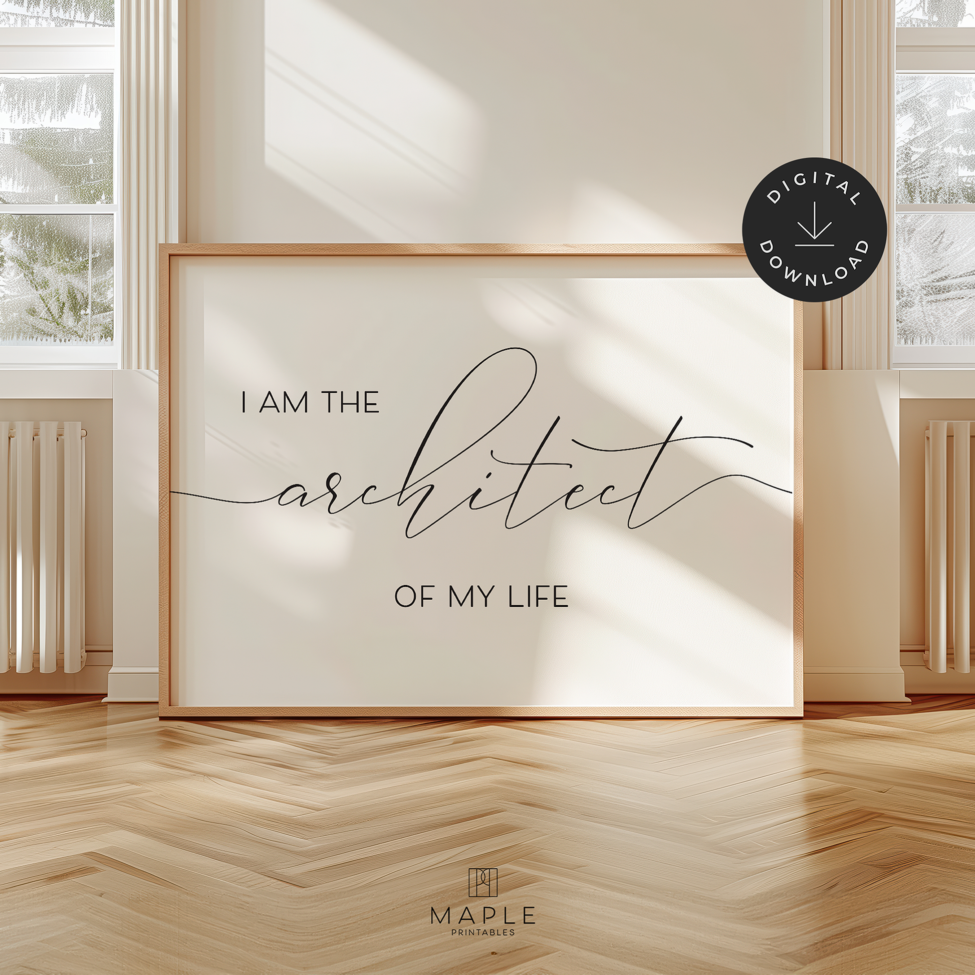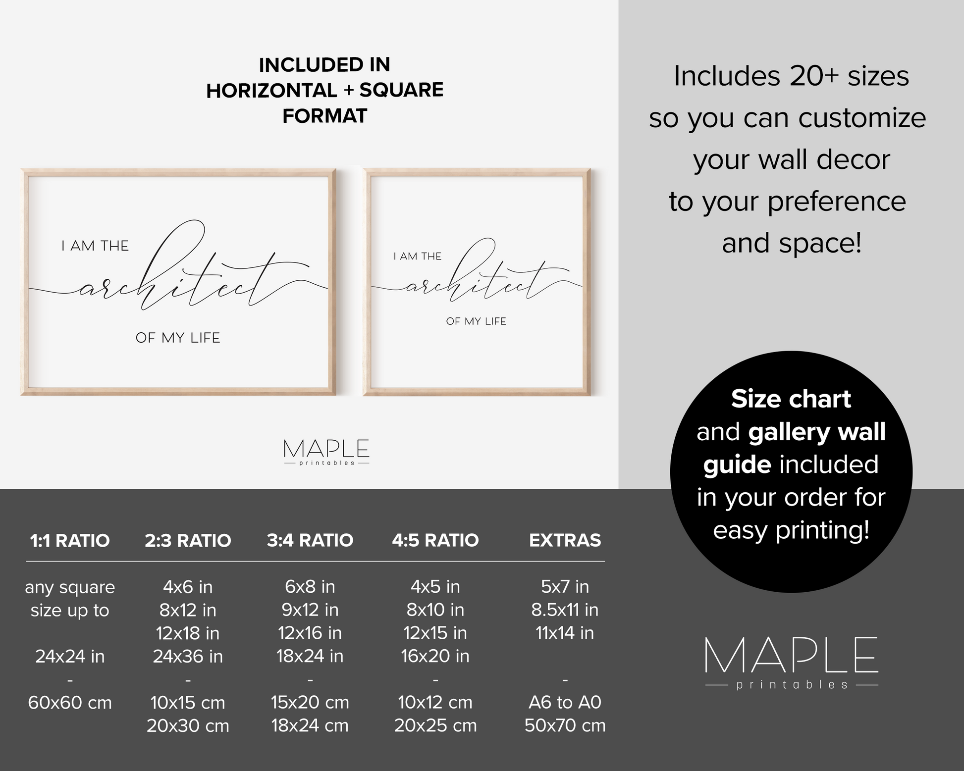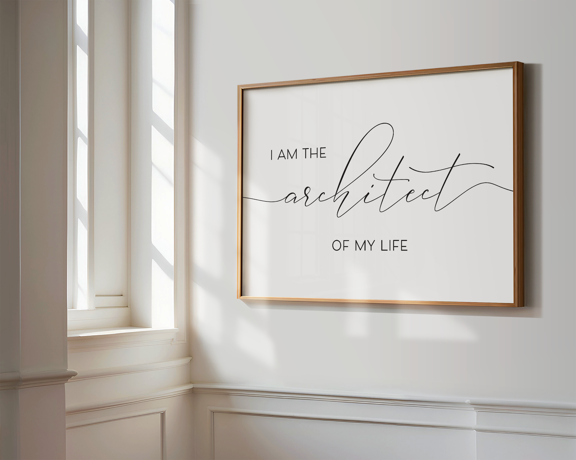 PRINTABLE WALL ART - Download and print this motivational affirmation poster to update your home office decor in minutes. The print says "I am the architect of my life" and would also be a great gift for anyone working to change their life!