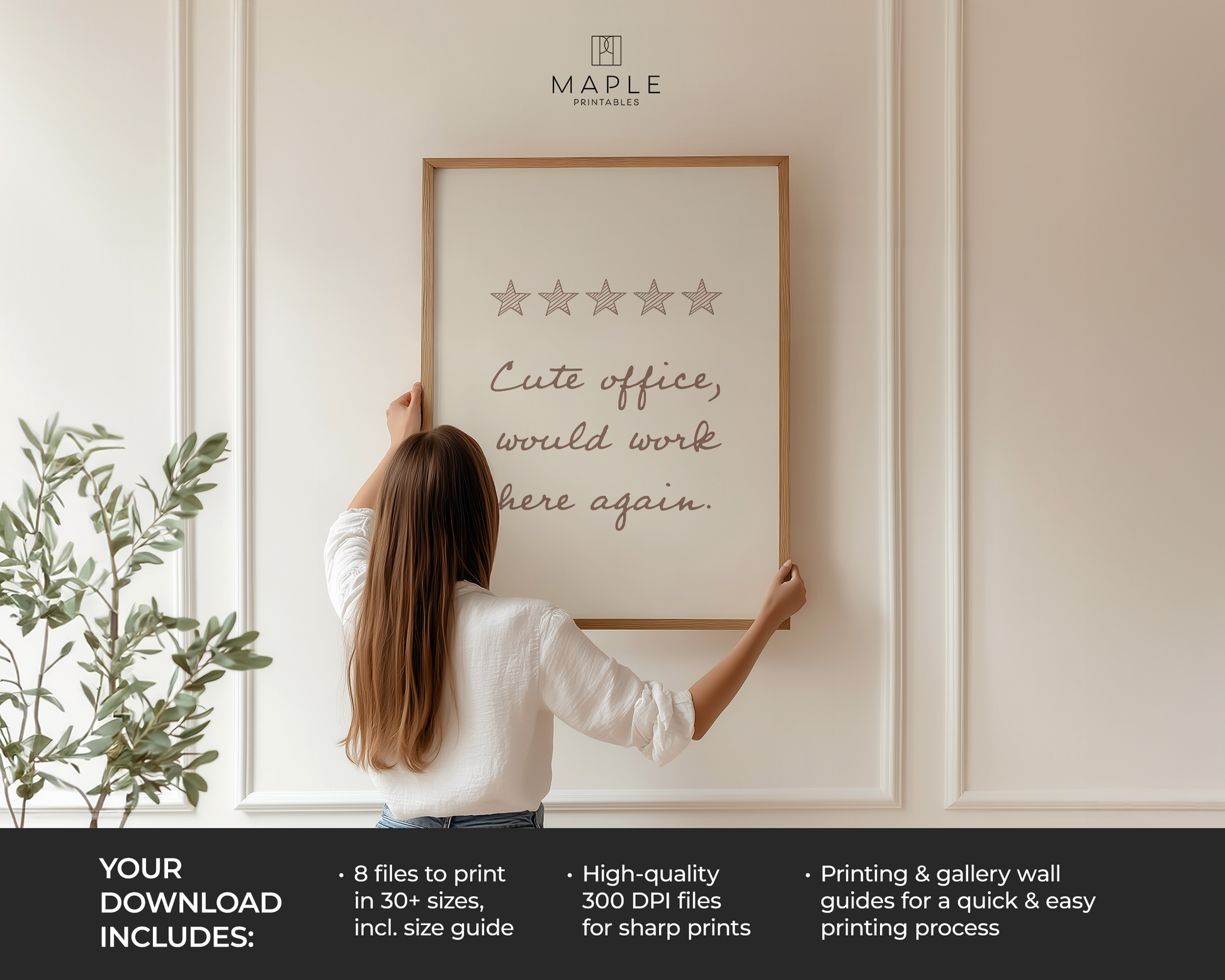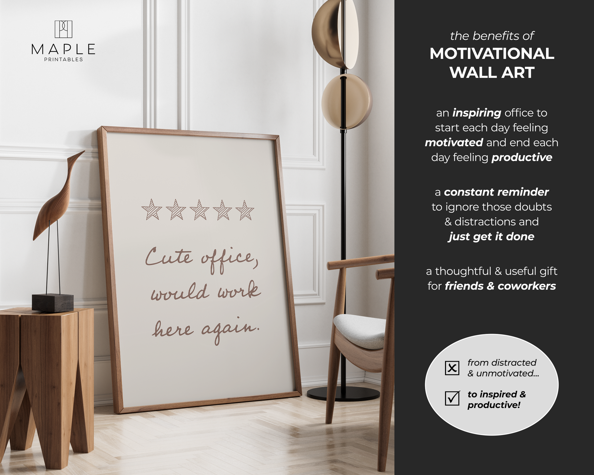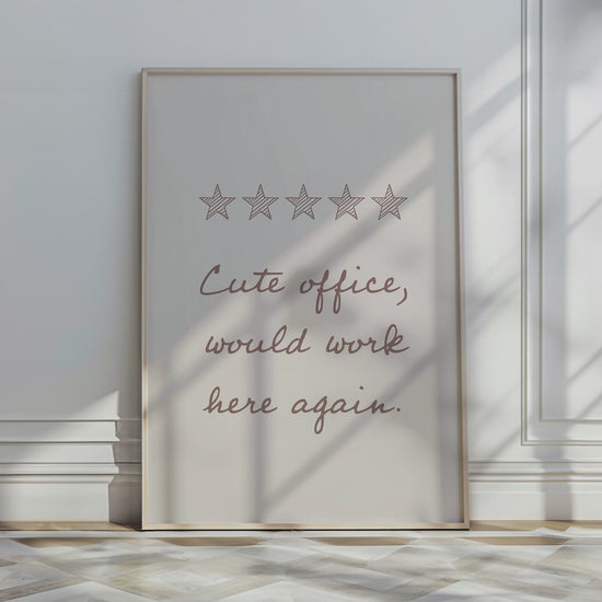 PRINTABLE WALL ART - Add a little motivational humour to your office decor with this poster that says “Cute office, would work here again” with a 5-star review. It’s a fun, lighthearted quote that anyone with a desk, cubicle, or office space can relate to. The clean black and white design keeps it simple and modern, making it easy to display in cubicles, offices, home offices, or co-working spaces. A great piece of funny office wall art that brings personality to the workspace while keeping the decor minimal and professional.