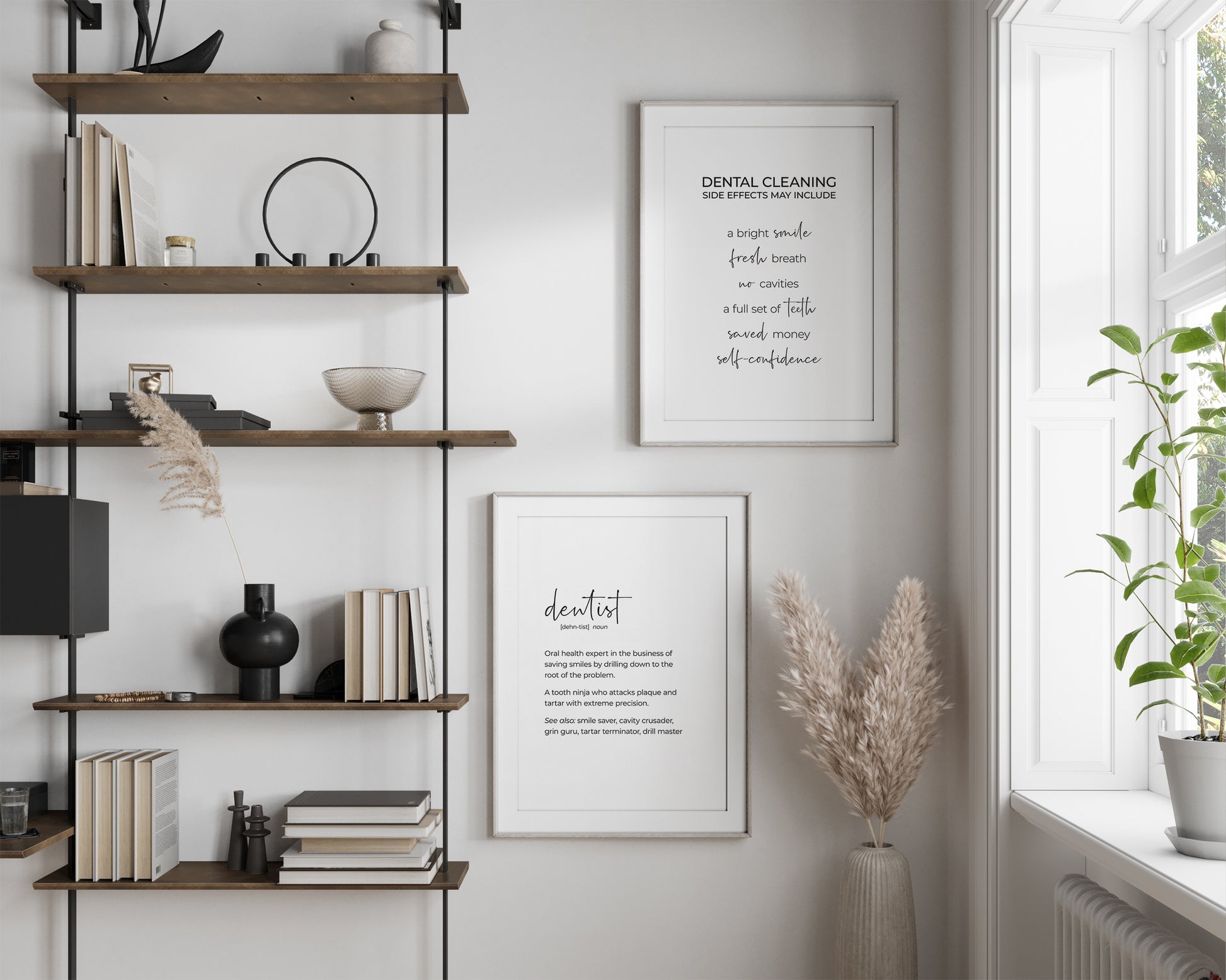 PRINTABLE SET OF 6 PRINTS - Download and print this gallery set to update your dental office decor in minutes. It features 5 funny dentistry quotes, including one with the illustration of a tooth, as well as a definition poster of 'dentist'. This would be a great gift for your dentist or any friends & family who are training to become dentists - these prints would definitely add humour to their office! The bundle includes 5 vertical prints and 1 horizontal print, all available in square format as well, so you can decorate your workplace in your own style and layout!