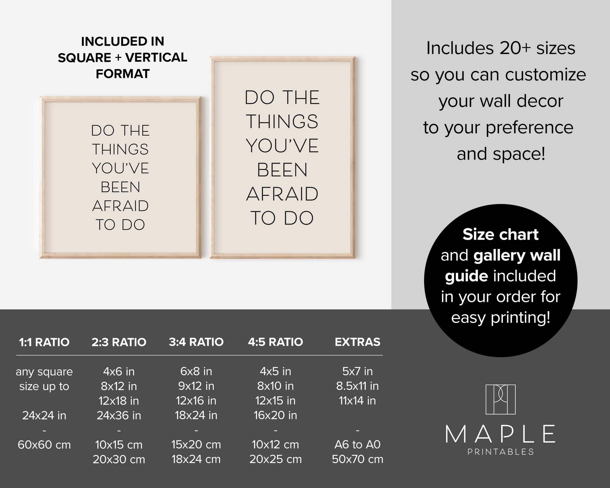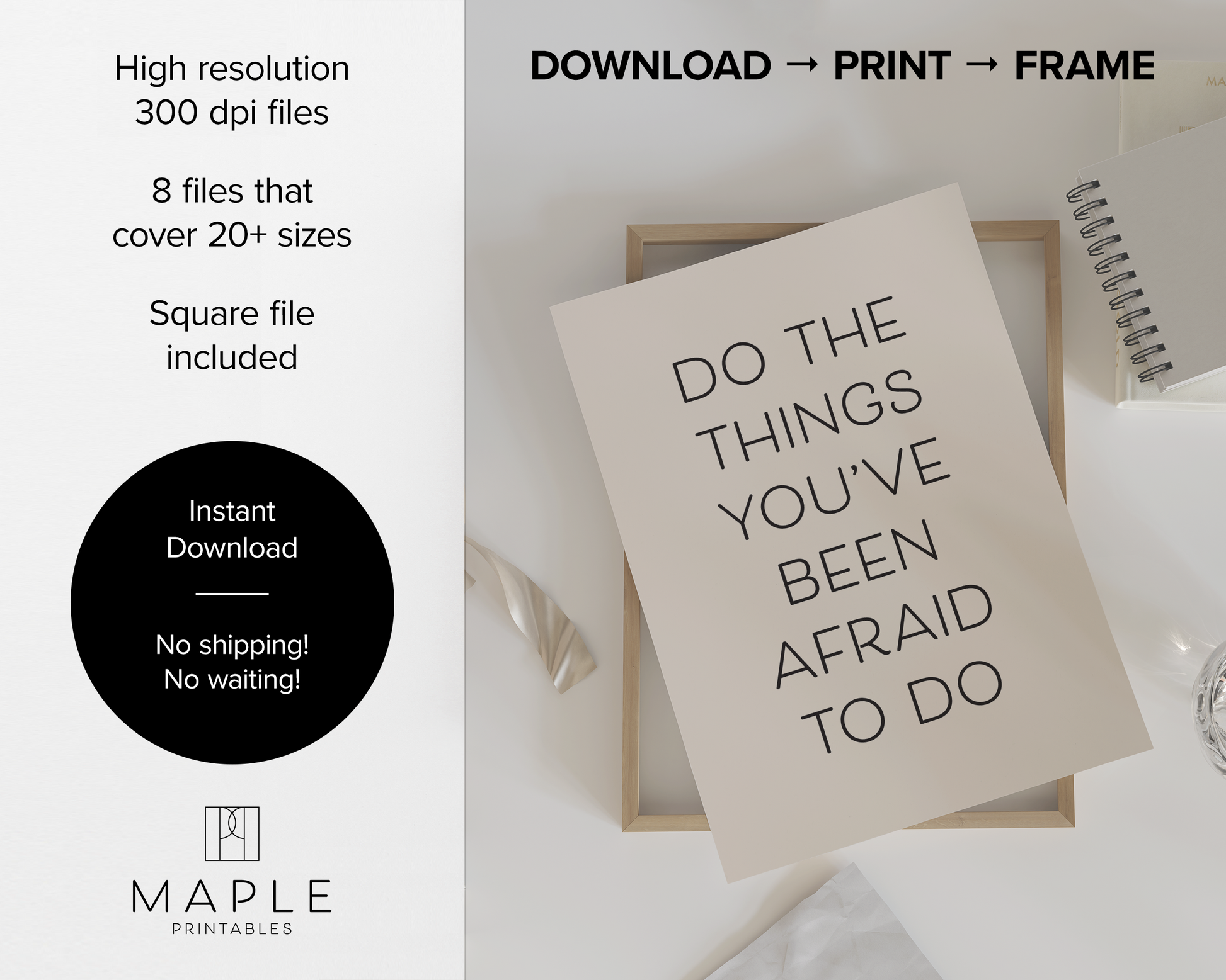 PRINTABLE WALL ART - Download and print this motivational poster to update your home office decor in minutes. The print says "Do the things you've been afraid to do" and would also be a great gift for anyone working to change their life!