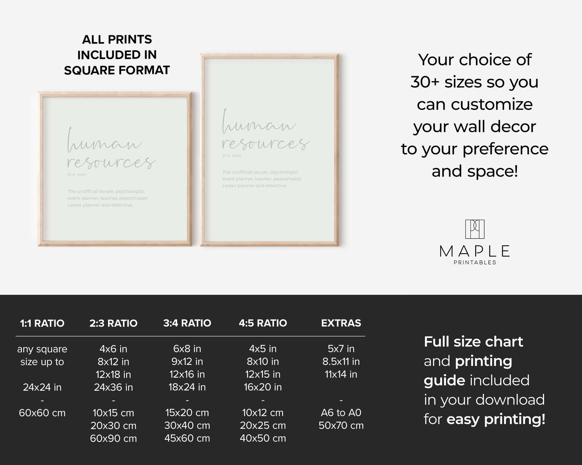 Each print is available in 8 files that cover 30+ sizes so you can create your own gallery wall - see details below and in photos. It's super easy: download, print (home, print shop or photo lab), frame and display!