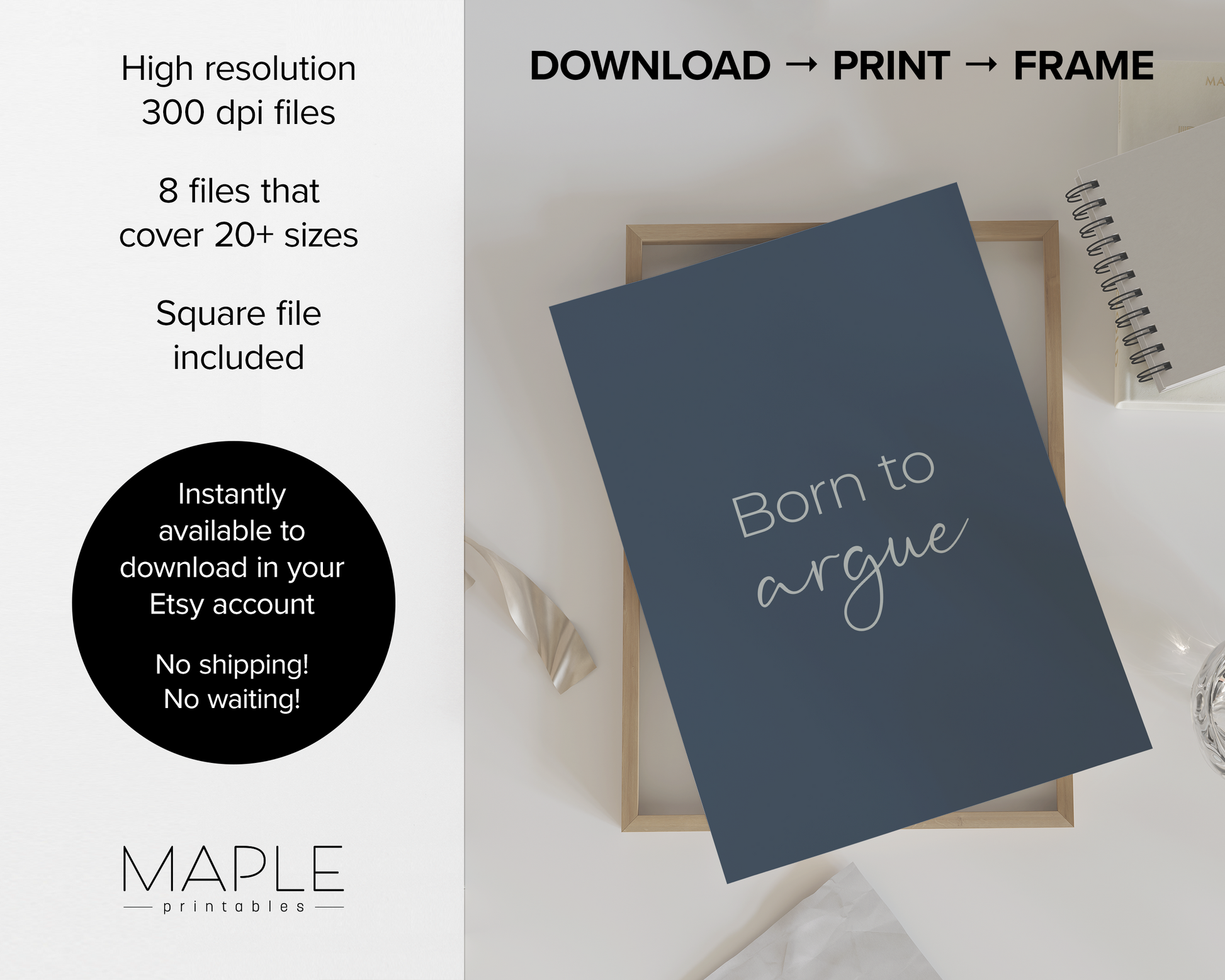 Each print is available in 8 files that cover 20+ sizes so you can create your own gallery wall - see details below and in photos. It's super easy: download, print (home, print shop or photo lab), frame and display!