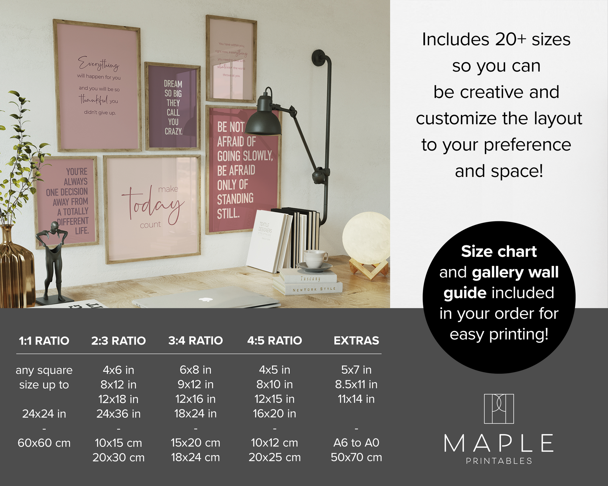 Each print is available in 8 files that cover 20+ sizes so you can create your own gallery wall - see details below and in photos. It's super easy: download, print (home, print shop or photo lab), frame and display!