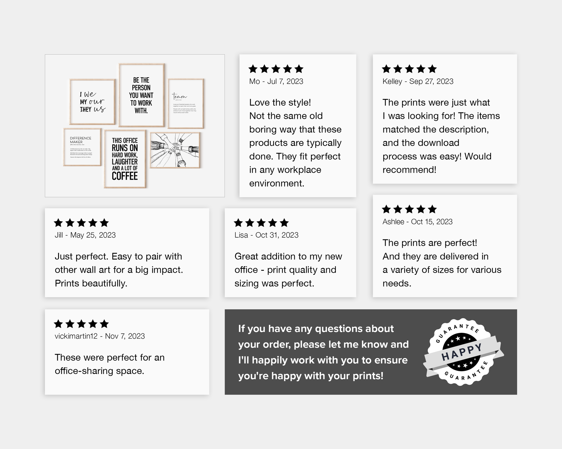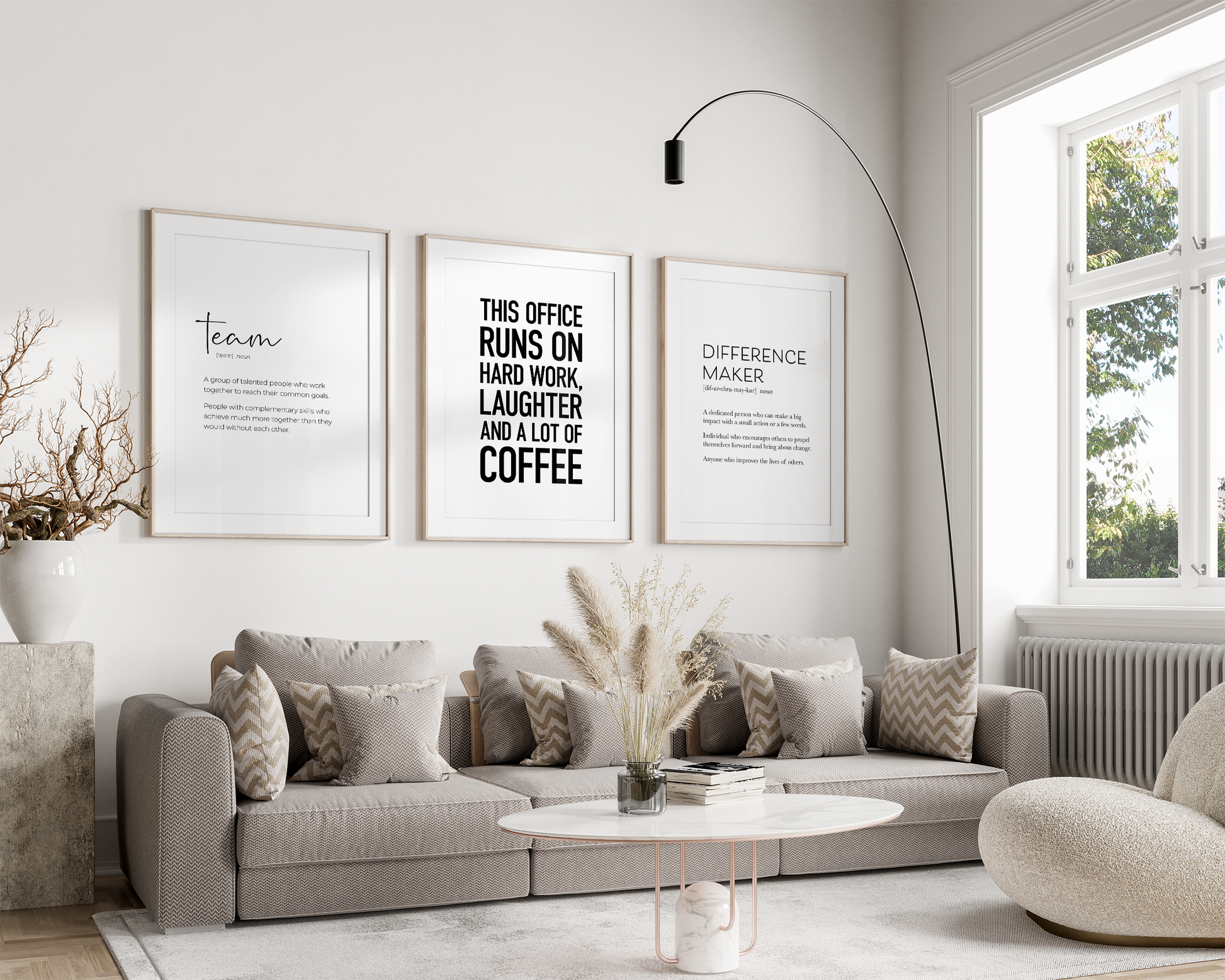 PRINTABLE SET OF 6 PRINTS - Download and print this teamwork gallery set to update your office decor in minutes. The office wall art bundle includes 6 printables, featuring 3 motivational quotes, 'team' & 'difference maker' definition posters and a drawing of hands stacked. It would be a great addition to your home office or cubicle decor as a reminder to rely on your team. The set includes 5 vertical prints and 1 horizontal print, all available in square format as well so you can decorate your workplace in your own style and layout!
