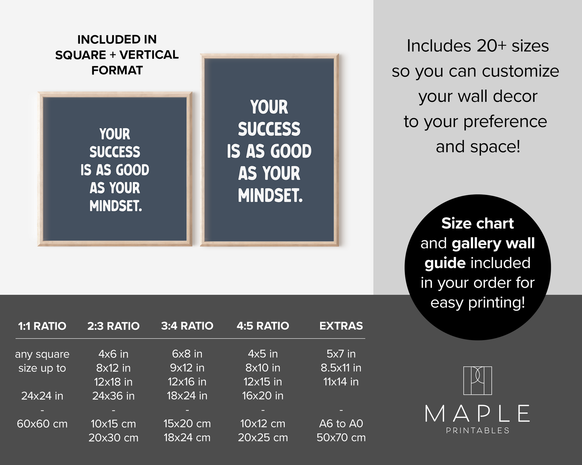PRINTABLE WALL ART - Download and print this motivational poster to update your home office decor in minutes. The print says "Your success is as good as your mindset" and would also be a great gift for anyone working to change their life!